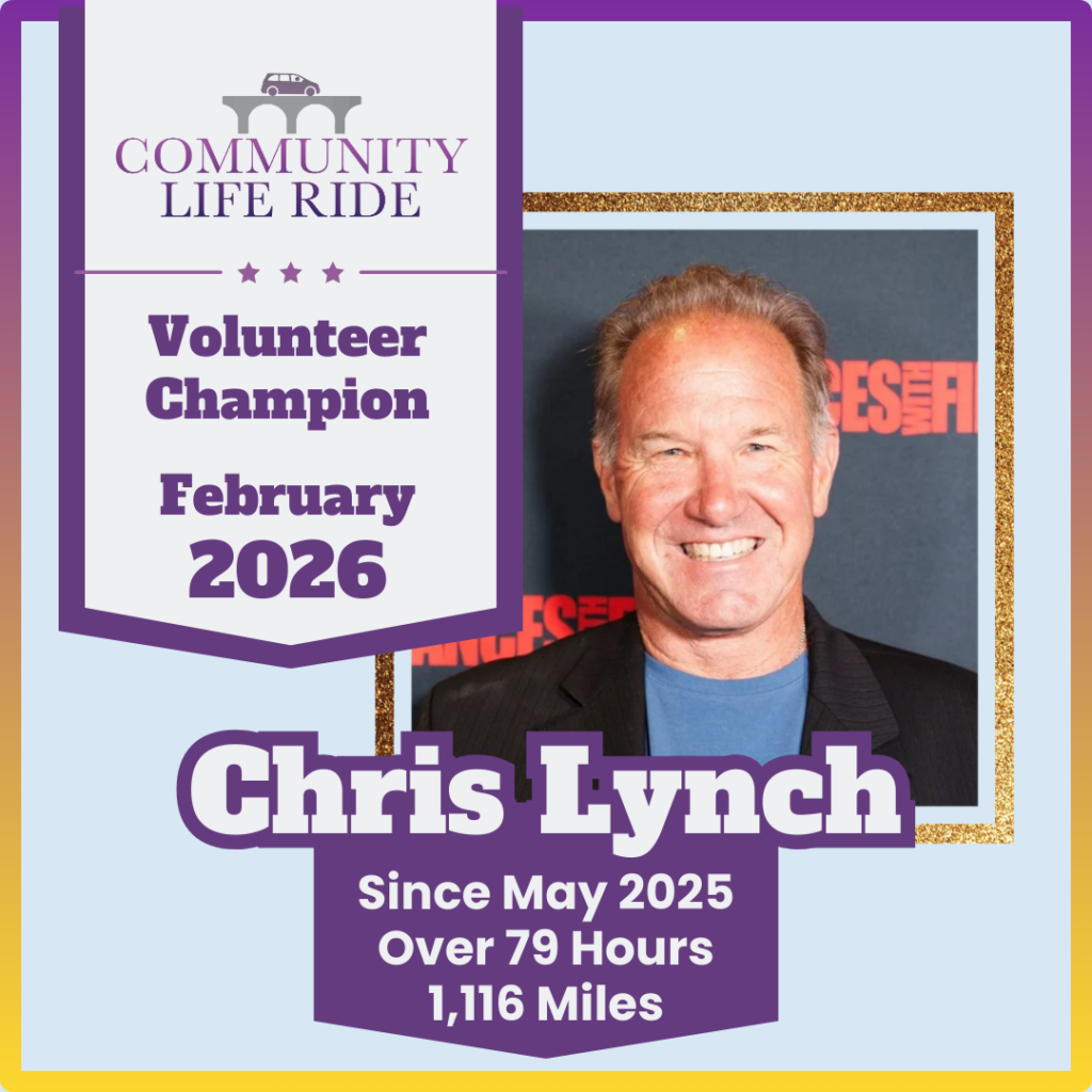 Chris started volunteering with CLR when he saw the need first-hand and recalls, “One day, I saw an older lady walking very slowly down 31, kind of in a dangerous spot, and I pulled over and gave her a ride to the bank. I realized that we can’t allow this to happen anymore. I’ve done a lot of volunteering, and this is the best bang for your buck. It is not a big ask to give someone a ride, but the people who need it get so much out of the service. It gives them their independence.”
