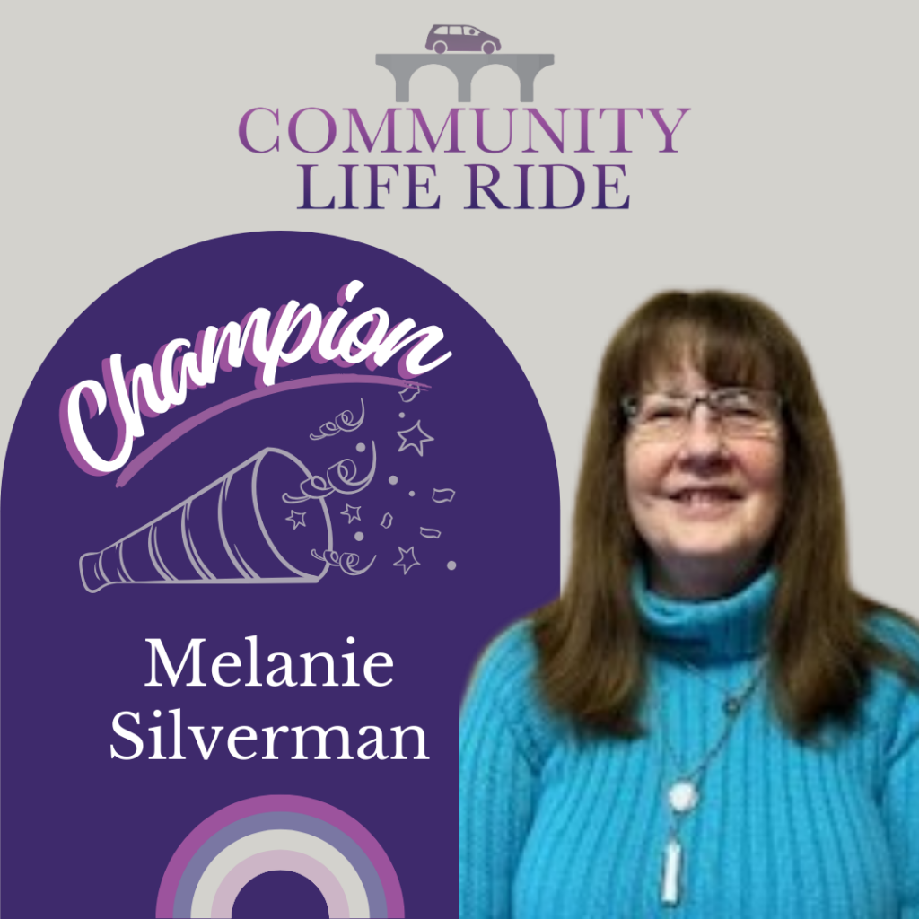 Announcing CLR’s April 2025 Champion, Melanie Silverman! Melanie has been a volunteer with us since February 2024. She has provided over 88 hours of service, driving 802 miles.